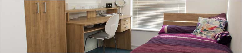 Our 114 rooms are fully furnished and en-suite to provide a well thought out living space where both study and relaxation can be easily achieved. Rooms include: